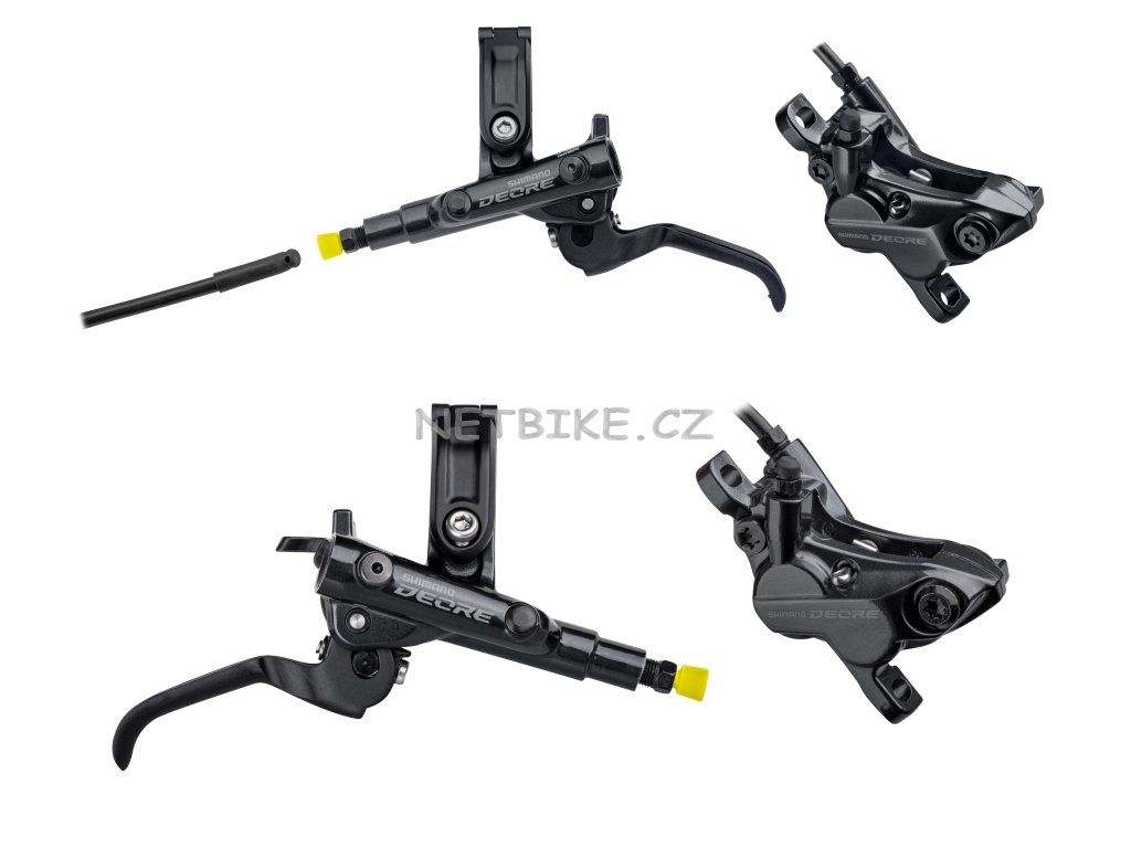 Sada přední a zadní hydraulické kotoučové brzdy 4 píst Shimano Deore M6120, kompletně natlakované.
